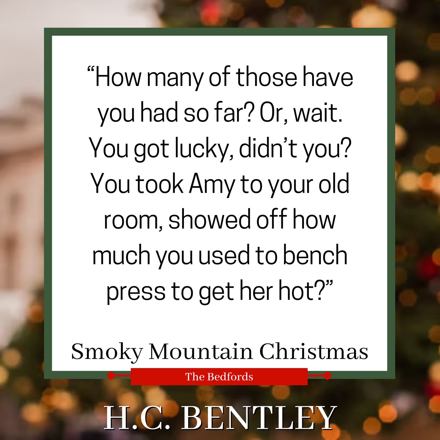 Grace and Ray Bedford have opened up the family home for their annual Christmas party and half of the Gatlinburg area has been invited. This includes Reeanne Hawthorne, owner of Smoky Mountain Sweets, a popular local candy store. A classic workaholic, Reeanne only came to the Bedford's Christmas party because she was pressured by a friend into accepting the invitation. Feeling out of place in the crowd, Reeanne thought she'd be better off doing inventory or going over the books. At least until a certain firefighter caught her eye.